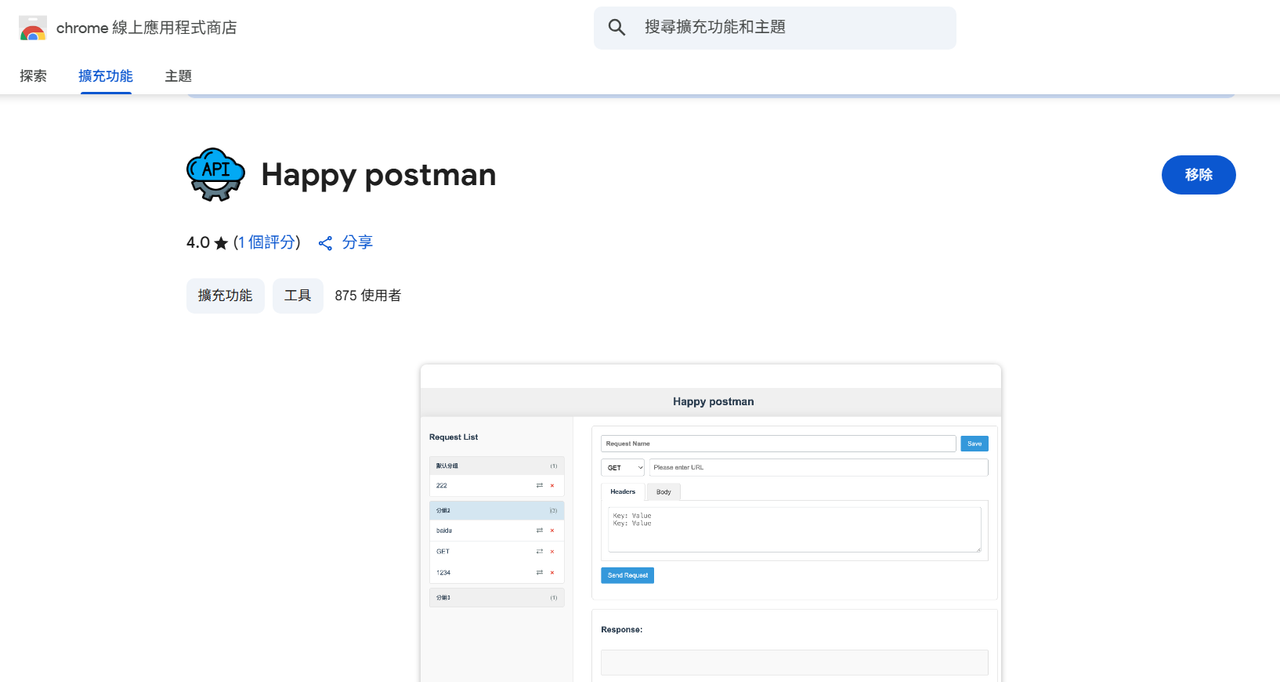 導致我 HOPPSCOTCH 無法使用,所以我找到一套感覺不錯的 Chrome 延伸套件 Happy Postman
